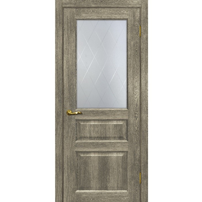 Дверное полотно Мариам Тоскана-2 ПВХ Чиаро гриджио стекло белый сатинат 2000х900 мм - современные калевочные межкомнатные двери. В данном виде дверей применяют подетальный принцип сборки, отличить их можно от остальных по наличию декоративных элементов, которые визуально разделяют дверное полотно на несколько частей. Толщина полотна - 38 мм. Полотно остекленное - белый сатинат, контурный полимер бесцветный, рисунок Ромб.