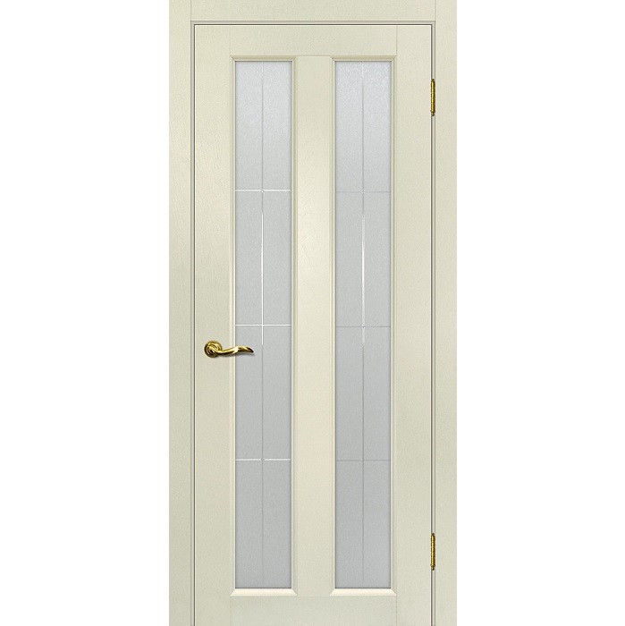 Дверное полотно Мариам Тоскана-5 ПВХ Ваниль стекло белый сатинат 2000х700 мм - современные калевочные межкомнатные двери. В данном виде дверей применяют подетальный принцип сборки, отличить их можно от остальных по наличию декоративных элементов, которые визуально разделяют дверное полотно на несколько частей. Толщина полотна - 38 мм. Полотно остекленное - белый сатинат, пескоструйная обработка, рисунок Решетка.