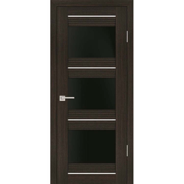 Дверное полотно Profilo Porte PSS-11 экошпон Мокко стекло черный лакобель – это царговое дверное полотно со ступенчатыми элементами. Благодаря поперечным связкам из многоступенчатого МДФ 30 мм, оно имеет оригинальное дизайнерское решение, очень востребованное в квартирах стиля хайтек, лофт. Дополнительную декоративность полотну придает стекло черный лакобель.