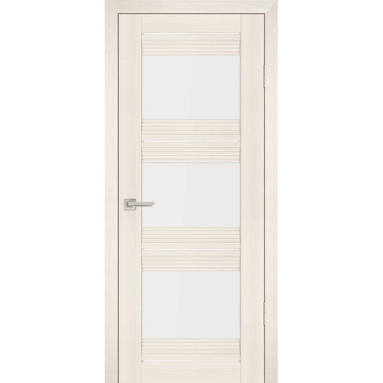 Дверное полотно Profilo Porte PSS-11 экошпон Перламутровый дуб стекло белый лакобель – это царговое дверное полотно со ступенчатыми элементами. Благодаря поперечным связкам из многоступенчатого МДФ 30 мм, оно имеет оригинальное дизайнерское решение, очень востребованное в квартирах стиля хайтек, лофт. Дополнительную декоративность полотну придает стекло белый лакобель.
