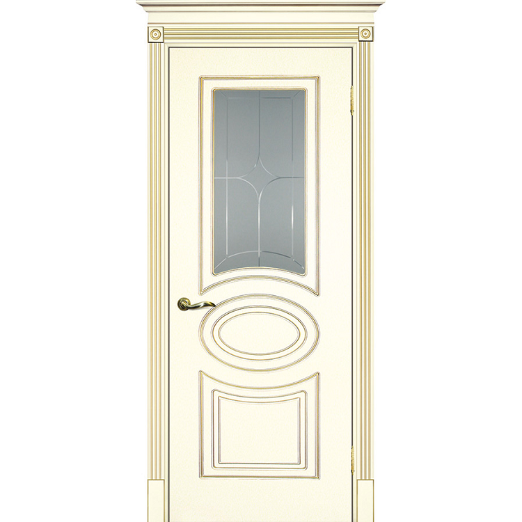 Дверное полотно Текона Смальта 03 Слоновая кость RAL 1013 патина золото стекло белый сатинат – это классическая межкомнатная дверь из наиболее востребованной коллекции производителя. Двери, покрытые высокопрочной эмалью, пользуются популярностью как у дизайнеров, так и у простых покупателей. Классический дизайн и универсальная светлая расцветка с применением золотой патины делают данную модель украшением любого интерьера. Дверь окрашена по системе RAL.