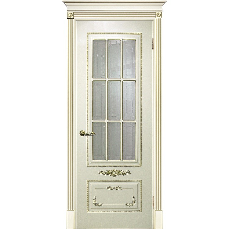 Дверное полотно Текона Смальта 09 Cлоновая кость RAL 1013 патина золото стекло сатинат – это классическая межкомнатная дверь из наиболее востребованной коллекции производителя. Двери, покрытые высокопрочной эмалью, пользуются популярностью как у дизайнеров, так и у простых покупателей. Классический дизайн и универсальная светлая расцветка с применением золотой патины делают данную модель украшением любого интерьера. Дверь окрашена по системе RAL.