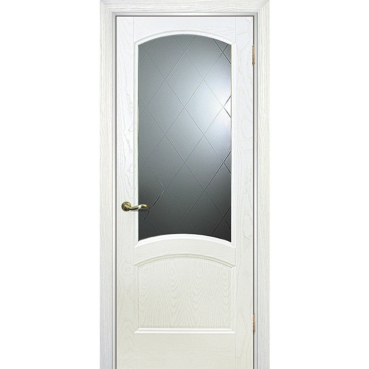 Дверное полотно Текона Вайт 01 шпон Ясень айсберг стекло Готика белое – это классическая межкомнатная дверь с натуральным покрытием. Полотно – царговое, сборка осуществляется по модульному принципу. Вертикальные стоевые, горизонтальные планки, филенки собираются в единую контсрукцию и скрепляются между собой с помощью евровинтов. Такая конструкция двери предполагает особую жесткость и прочность.