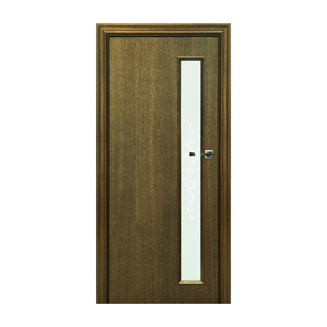 Межкомнатная дверь орех Брама Нюанс 35.6 Дуб со стеклянной вертикальной узкой вставкой и облицовкой натуральным дубовым шпоном.