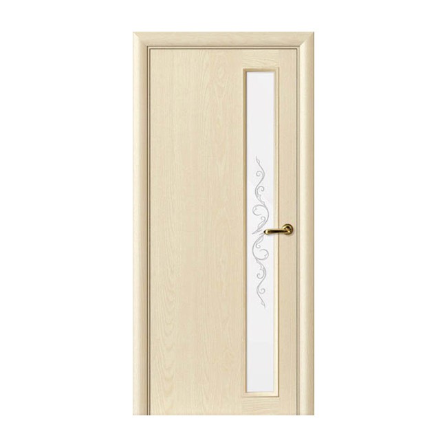 Межкомнатная дверь ясень Брама Нюанс 35.6 со стеклянной вертикальной узкой вставкой и облицовкой натуральным дубовым шпоном.