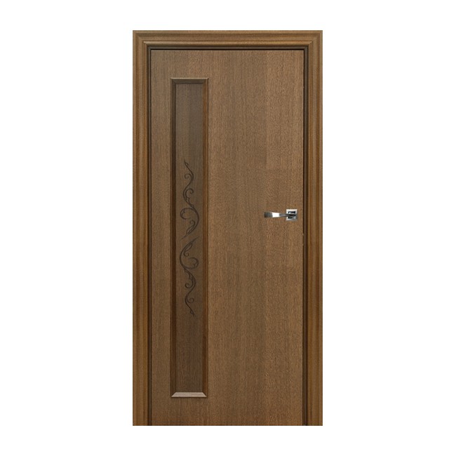 Межкомнатная дверь анегри Брама Нюанс 35.7 со декоративной вертикальной узкой вставкой и облицовкой натуральным дубовым шпоном. Конструкция устойчива к деформации при перепадах влажности.