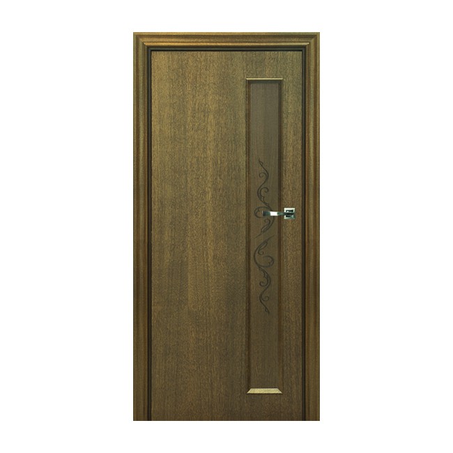 Межкомнатная дверь орех Брама Нюанс 35.7 Дуб со декоративной вертикальной узкой вставкой и облицовкой натуральным дубовым шпоном. Конструкция устойчива к деформации при перепадах влажности.