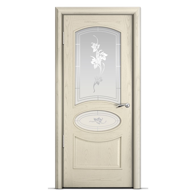 Двери межкомнатные Milyana Caprica Рим Ясень Жемчуг 800х2000 мм изготавливаются по традиционной итальянской технологии. Полотна и коробки изготовлены по типу «сендвича» из клеенного массива сосны, облицованного МДФ и натуральным шпоном. Филенчатая часть изготовлена из листового МДФ. Такая технология полностью исключает возможность образования перекосов, обеспечивая прочную конструкцию двери. Стекло: двухстороннее матированное, с художественным рисунком, декорировано фьюзингом.