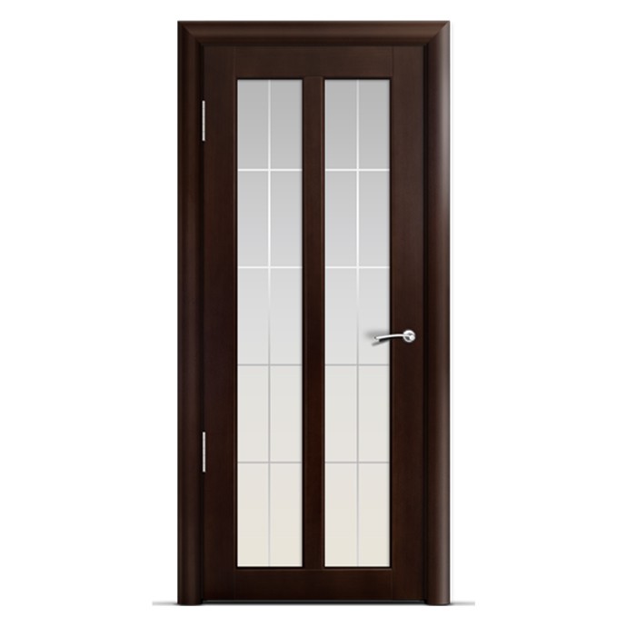 Межкомнатная дверь со стеклом Milyana Stella Дана Темный орех 600х2000 мм изготавливается по традиционной итальянской технологии. Полотна и коробки изготовлены по типу «сендвича» из клеенного массива сосны, облицованного МДФ и натуральным шпоном. Филенчатая часть изготовлена из листового МДФ. Такая технология полностью исключает возможность образования перекосов, обеспечивая прочную конструкцию двери. Стекло: двухстороннее матированное, с художественным рисунком, декорировано фьюзингом.