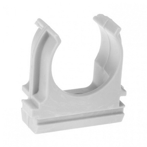 Клипса Ruvinil представляет собой пластиковую основу с пружинящими боковыми элементами (труба «защелкивается» в них). В центре изделия предусмотрено отверстие для крепления держателя к поверхности при помощи крепежного элемента (дюбеля и винта).