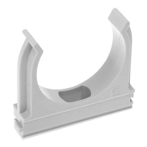 Крепёж-клипса для труб Промрукав 2740 d40 мм предназначена для крепления гладких труб ПВХ или гофрированных труб одного диаметра к поверхности стен, потолков, полов или перегородок. Для монтажа предусмотрено технологическое отверстие под дюбель или саморез.