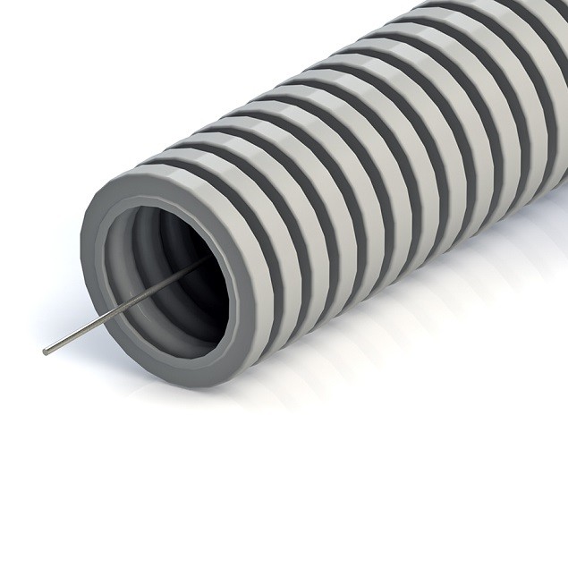 Труба изготовлена из качественного поливинилхлорида. Материал устойчив к воздействию влаги и не поддерживает горения. Изделие оснащено зондом из стальной проволоки, который облегчает протяжку кабеля после монтажа трубы.
