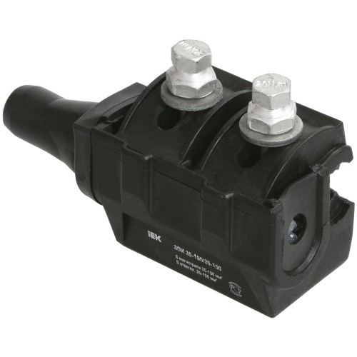 Зажимы IEK ЗОИ 35-150/35-150 предназначены для соединения и ответвления фазных и нулевых самонесущих изолированных проводов напряжением до 1 кВ, а также для ответвления абонентских проводников (проводов освещения). При затягивании болтов ножи контактной пластины образуют надежный электрический контакт, прокалывая изоляцию магистрального проводника и проводника ответвления. Конструкция зажима обеспечивает герметичность соединения и надежный электрический контакт, что подтверждено испытаниями, во время которых зажим погружался на глубину 1 метр на 1 минуту при подаче переменного напряжения 6 кВ частотой 50 Гц.