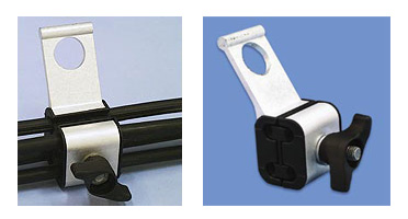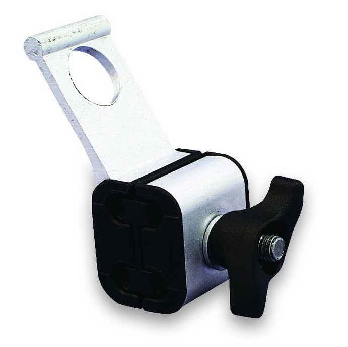 Зажим состоит из двух пластин, соединенных болтом с «барашком». Для подвеса зажима к узлу крепления предусмотрено специальное отверстие. Стойкость к воздействию внешней среды и коррозии обеспечивается благодаря гальваническому покрытию материала.