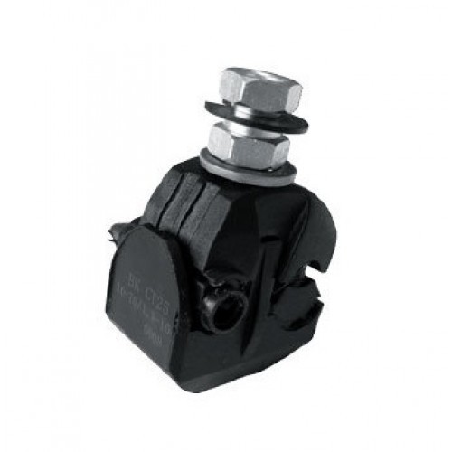 Прокалывающий зажим предназначен для соединения и создания ответвлений от СИП. Именно этот прокалывающий зажим чаще всего используют для подключения абонентов от магистральной линии. Зажим СТ70 оснащен металлической срывной головкой.