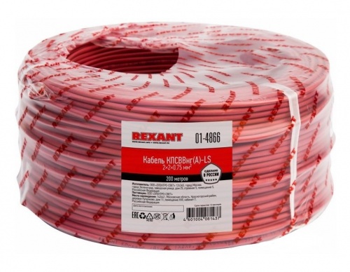 Жилы – однопроволочные из медной проволоки. На жилах – ПВХ-изоляция из пластиката в виде сплошного концентрического слоя. Изолированные жилы скручены в пару. На витые пары наложена оболочка из ПВХ красного цвета, которые не поддерживает горение.