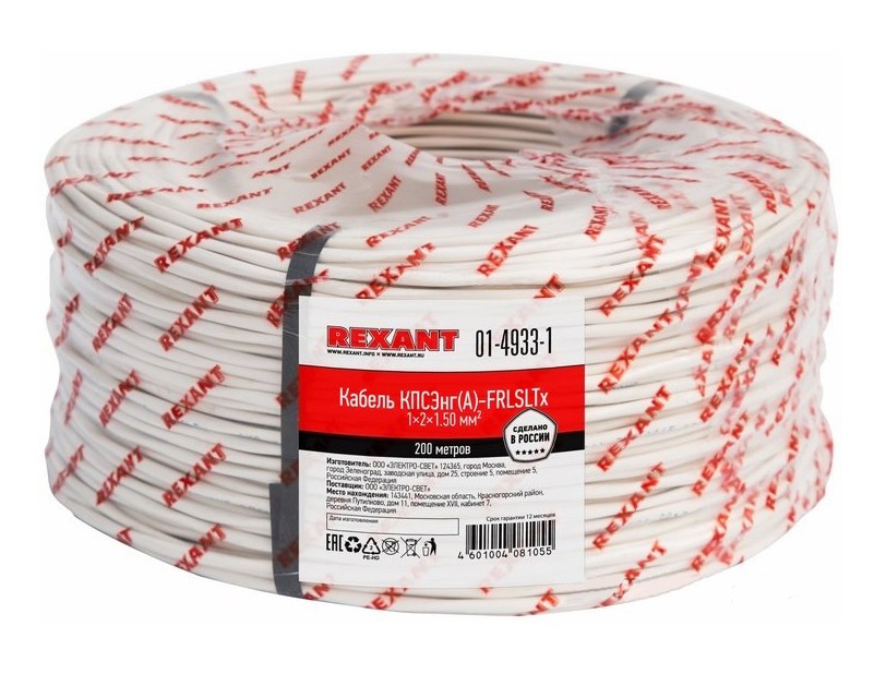 Кабель Rexant КПСЭнг(А)-FRLSLTx - симметричный парной скрутки, огнестойкий, безгалогенный, не распространяющий горение при групповой прокладке и не выделяющий коррозионно-активных газообразных продуктов при горении и тлении, низкий уровень токсичности.