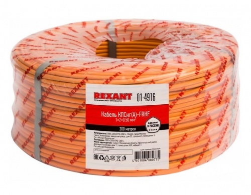 Кабели Rexant КПСнг(А)-FRHF 1x2x0,5 мм симметричной парной скрутки, огнестойкие, без галогенный, не распространяющие горение при групповой прокладке и не выделяющие коррозионно-активных газообразных продуктов при горении и тлении.