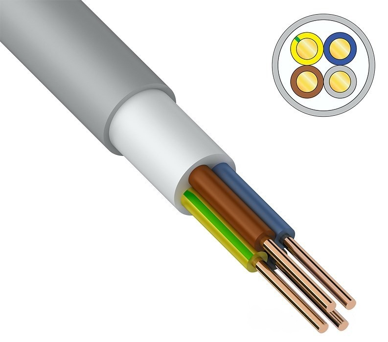 Кабель NUM-J (NYM) выполнен из медной, однопроволочной токопроводящей жилы, круглой формы, соответствует требованиям ГОСТ 31996-2012 (ТУ 3520-015-38229892-2015). Изоляция жилы состоит из поливинилхлоридного пластиката. Изоляция кабеля выполнена из двух материалов, первый — это пластикат экструдированной мелом наполненной безгалогеновой композиции и второй — наружная оболочка, выполненная из поливинилхлоридного пластиката. Кабель делают по немецкому стандарту VDE.