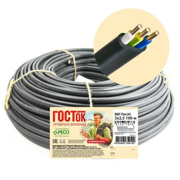 Кабель силовой монтажный ГОСТок ВВГ-Пнг(А) — оптимальное решение для качественной электропроводки в квартире или частном доме. Кабель используется для прокладки в сухих (проводка в квартире, частном доме, производственный цех, завод) и влажных (проводка в ванной комнате, погребе, гараже) производственных и жилых помещениях, на специальных кабельных эстакадах, в блоках, а также для прокладки на открытом воздухе. Он предназначен для передачи и распределения электрической энергии и электрических сигналов в стационарных установках на номинальное переменное напряжение 0,66 кВ и частоты 50 Гц.