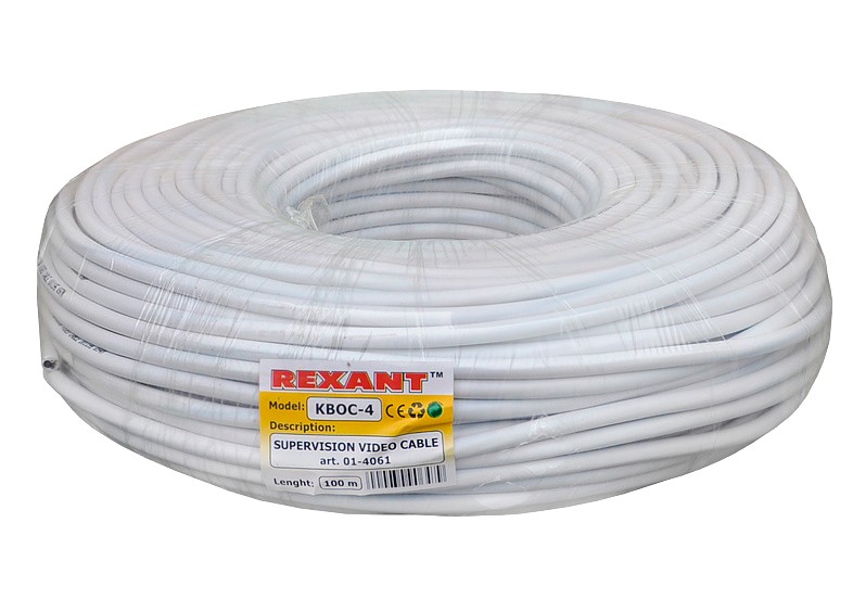 Комбинированный кабель Rexant КВОС-4 применяется в сложных системах наблюдения, где необходимо поддерживать высокое качество сигнала и стабильность эксплуатации видеокамеры. Его используют как для прокладки в помещениях, так и за их пределами. Кабель представляет собой сочетание коаксиального кабеля, по которому передаются высокочастотные сигналы к приемнику, и жил питания, которые обеспечивают энергоснабжение камеры и передачу сигналов управления аппаратом. Коаксиальная часть представляет собой кабель типа RG-59, состоящий из медного центрального проводника, окруженного изоляцией из полиэтиленового диэлектрика, и медной оплетки-экрана, защищающей сигнал от помех. Жилы питания изготовлены из меди, площадь их сечений составляет 0,5 мм2. Общая оболочка - ПВХ материал.