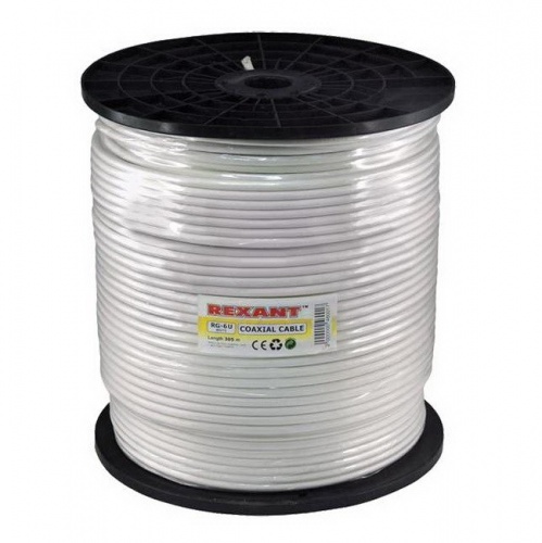 Кабель коаксиальный Rexant RG-6U (75 Ом) считается самым распространенным решением для подключения телевизионных систем. Обеспечивая передачу аналоговых сигналов, этот кабель применяется для прокладки внутри помещений в составе распределительных ТВ-сетей. Коаксиальный кабель RG-6U (75 Ом) по структуре представляет собой два проводника – внутренний и внешний, расположенных соосно и разделенных изолирующим диэлектриком. Центральный проводник – однопроводная омедненная жила - окружен изоляцией из вспененного полиэтилена. Экран, наложенный на сердечник, имеет дополнительную алюминиевую оплетку из 48 нитей для обеспечения его электрической непрерывности. Сплошная внешняя оболочка изготовлена из ПВХ и имеет белый цвет. Номинальное волновое сопротивление данного кабеля составляет 75 Ом.