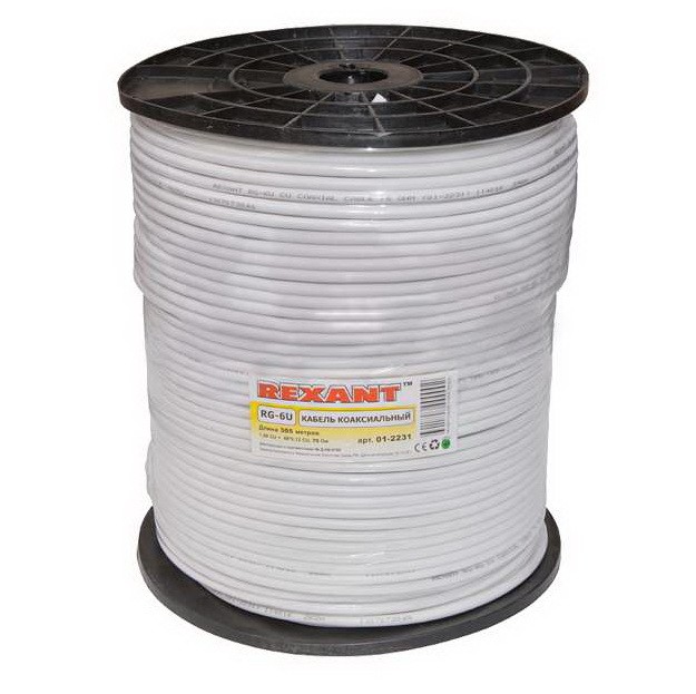 Качественный телевизионный кабель является важным связующим элементом в видео и ТВ-системах. Обеспечивающий передачу высокочастотных электрических сигналов, коаксиальный кабель Rexant RG-6U+Cu 48х0,12 +Cu (75 Ом) белый применяется для систем кабельного и спутникового телевидения. Данный кабель состоит из размещенных соосно центрального одножильного медного проводника и экрана. Внутренний одножильный проводник изготовлен из качественной меди, обеспечивающей высококлассную передачу сигналов, и заключен в полиэтиленовый диэлектрик, который сохраняет соосное расположение проводника и экрана. Экран кабеля наложен на сердечник и имеет дополнительную оплетку из 48 медных нитей для обеспечения его электрической непрерывности и улучшения защиты от помех. Внешняя оболочка кабеля изготовлена из ПВХ и имеет белый цвет. Номинальное волновое сопротивление кабеля – 75 Ом. Кабель применим для сигналов с диапазоном частот 5-1000 МГц.