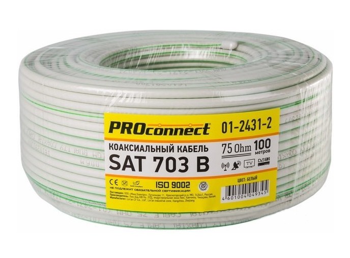 Кабель PROconnect SAT 703 B используется для подключения эфирного, кабельного и спутникового телевидения, а также видеокамер наружного и внутреннего наблюдения.