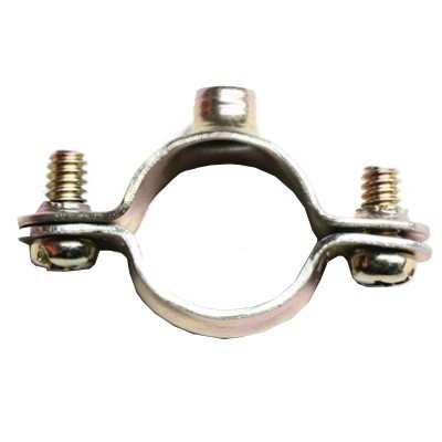 Хомут стальной ДКС для жестких труб состоит из двух металлических изогнутых оцинкованных пластин, которые соединены друг с другом двумя болтами. Такой хомут позволяет регулировать диаметр в определенном диапазоне. При креплении необходимо дополнительно использовать резиновый уплотнитель.