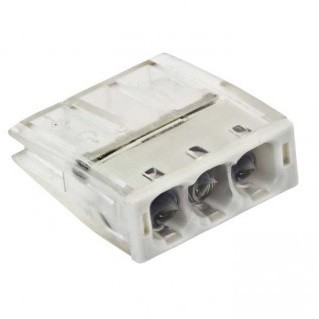 Клемма строительно-монтажная EKF Proxima СМК 2273-243 3 отверстия с пастой предназначена для присоединения и ответвления одножильных проводников из меди и алюминия или многожильного медного провода с наконечником в электрических цепях переменного тока с частотой 50 Гц напряжением до 400 В. Клеммы применяются в распределительных коробках. Удобство данных клемм заключается в безвинтовом креплении проводников (используется подпружиненная стальная пластина с антикоррозионным покрытием).