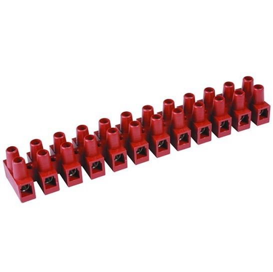 Колодка клеммная ДКС 43112FV предназначена для соединения проводников. Она характеризуется высокой электропроводностью, легкостью в монтаже и эксплуатации. Используется клеммная колодка для соединения разнообразных токоведущих жил в диэлектрическом корпусе. Упрощенные условия монтирования данного изделия обеспечиваются благодаря наличию прижимного винта. Колодка изготовлена из композитного полимерного материала фибергласса (стеклопластик). Изделие подключается при номинальном напряжении в 450 В и номинальном токе в 24 А. Максимальная рабочая температура - +150 °С. Сечение жилы равно 2,5 мм.