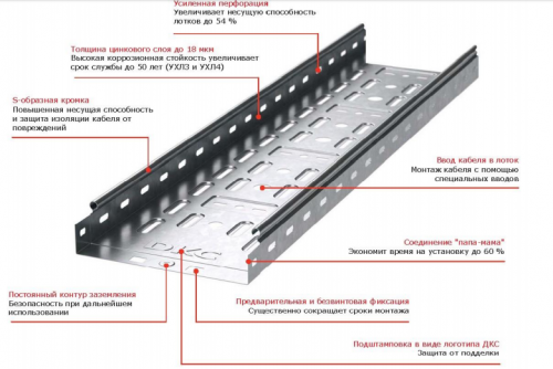 Основная функция системы металлических лотков - постоянно удерживать и защищать кабель. Они имеют отштампованные края для быстрого соединения внахлест ("папа-мама").