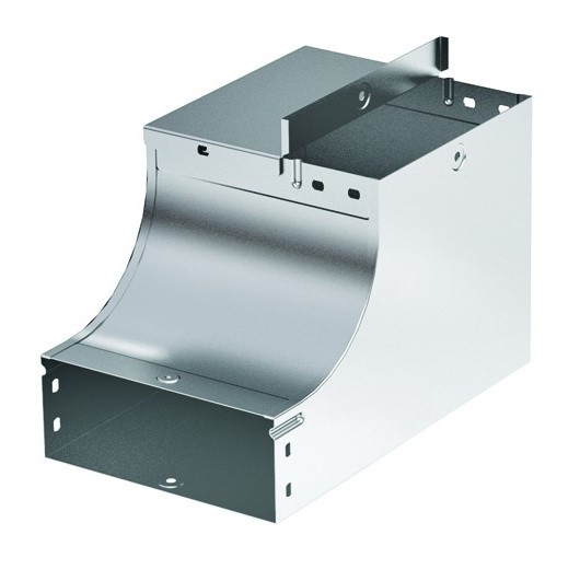 Угол предназначен для организации поворота трассы лотков высотой 80 мм вверх на 90°, при этом разворачивая открытую часть лотка вокруг своей оси на 90°.