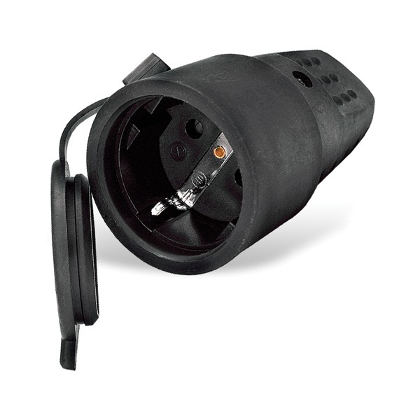 Штепсельное гнездо UNIVersal 602228 изготовлено из каучука, на ощупь напоминающего мягкую резину. Каучук обладает хорошими электроизоляционными свойствами, высокой износостойкостью, изделия из него обладают степенью защиты IP44 (защита от пыли и брызг). Крепежные элементы контактных групп позволяют подключать провод с сечением от 0,5 мм2 до 2,5 мм2.