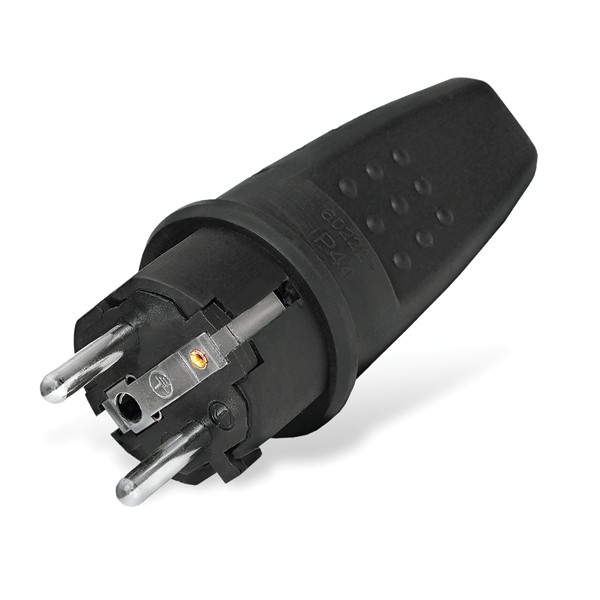 Вилка электрическая UNIVersal 602227 изготовлена из каучука, на ощупь напоминающего мягкую резину. Каучук обладает хорошими электроизоляционными свойствами, высокой износостойкостью, изделия из него обладают степенью защиты IP44 (защита от пыли и брызг). Штифты вилки никелированные цельнолатунные. Крепежные элементы контактных групп позволяют подключать провод с сечением от 0,5 мм2 до 2,5 мм2.