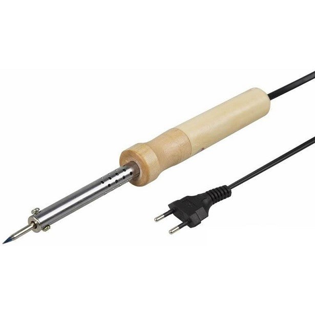 Электрический паяльник PROconnect 12-0174-4 с деревянной ручкой и клинообразным жалом непрерывного нагрева предназначен для монтажной пайки и лужения оловянно-свинцовистыми припоями элементов радиоэлектронной аппаратуры и тонкостенных металлических изделий в производственных и бытовых условиях.