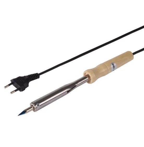 Электрический паяльник PROconnect 12-0178-4 с деревянной ручкой и клинообразным жалом непрерывного нагрева предназначен для монтажной пайки и лужения оловянно-свинцовистыми припоями элементов радиоэлектронной аппаратуры и тонкостенных металлических изделий в производственных и бытовых условиях.