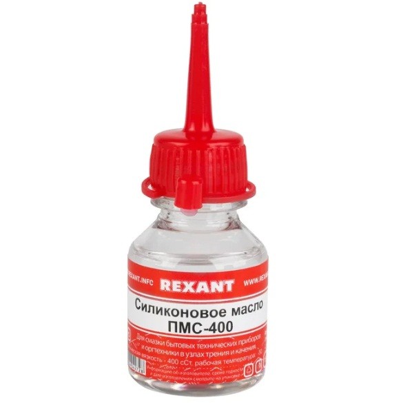Силиконовое масло Rexant ПМС-400 предназначено для смазывания малонагруженных деталей в механизмах трения и качения в приборах, бытовой и оргтехнике. Масло ПМС (полиметилсилоксаны) - прозрачная, бесцветная, химически инертная и коррозионностойкая жидкость. В отличие от минеральных или синтетических масел, данная жидкость обладает превосходными электроизоляционными, антиадгезионными и пеногасящими свойствами.