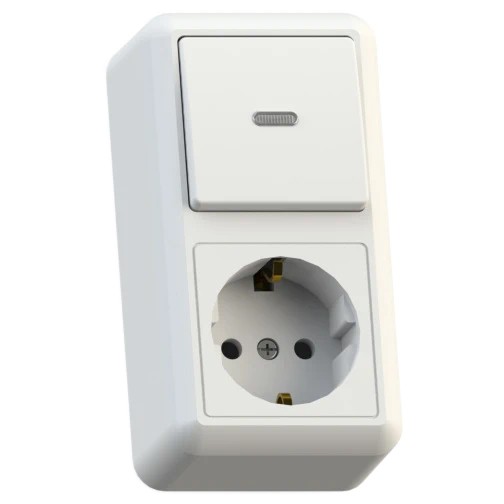 Комбинированный блок - это отличное решение с эстетической точки зрения, экономящее пространство и улучшающее внешний вид помещения. Часто устанавливается для управления освещением санузла, в основном, на стену в коридоре. Электроустановочные изделия открытой установки монтируются непосредственно на стену без вспомогательных манипуляций, таких как штробление под подрозетники. Быстрый монтаж и удобный доступ к проводам выступают дополнительным плюсом такой конструкции по сравнению с аналогичной моделью закрытого типа. Рекомендуется устанавливать не ниже 20 см от пола для избежания попадания брызг во время влажной уборки.