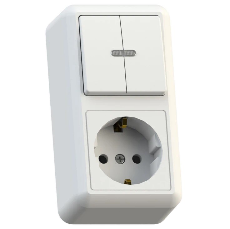 Комбинированный блок - это отличное решение с эстетической точки зрения, экономящее пространство и улучшающее внешний вид помещения. Часто устанавливается для управления освещением санузла, в основном, на стену в коридоре. Электроустановочные изделия открытой установки монтируются непосредственно на стену без вспомогательных манипуляций, таких как штробление под подрозетники. Быстрый монтаж и удобный доступ к проводам выступают дополнительным плюсом такой конструкции по сравнению с аналогичной моделью закрытого типа. Рекомендуется устанавливать не ниже 20 см от пола для избежания попадания брызг во время влажной уборки.