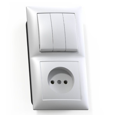 Блок комбинированный Кунцево-Электро Селена БКВР-410: трехклавишный выключатель и розетка для скрытой установки предназначен для вертикального монтажа. Корпус изделия изготовлен из ударопрочного, высококачественного ABS-пластика.