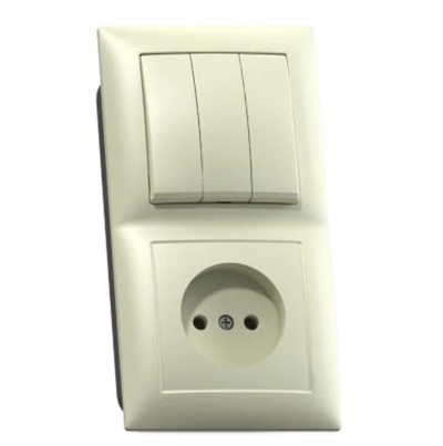 Блок комбинированный Кунцево-Электро Селена БКВР-410: трехклавишный выключатель и розетка для скрытой установки предназначен для вертикального монтажа. Корпус изделия изготовлен из ударопрочного, высококачественного ABS-пластика.