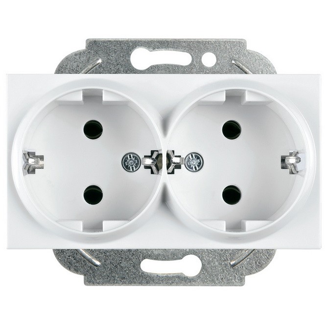Механизм двухместный розетки Panasonic Karre Plus WKTT02052WH-RES с заземлением 220V 16А, поставляется без рамки, является доступным, надежным и функциональным решением, отлично подходящим для установки в многоквартирных домах, офисах и других общественных зданиях. Простая и быстрая установка осуществляется при помощи специальных винтовых зажимов. Монтаж одинаково прост вне зависимости от материала стен и типа монтажной коробки. ABS пластик, IP20, латунные контакты.