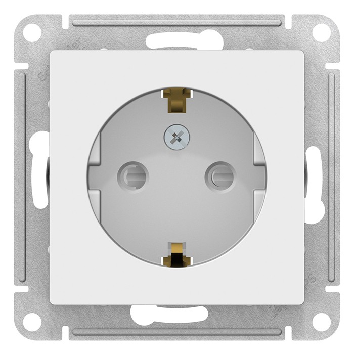Механизм розетки Schneider Electric AtlasDesign ATN000145 одноместный с заземлением и защитными шторками белый предназначен для подключения к электросети различных бытовых электроприборов переменного тока с номинальным напряжением 250 В, частотой 50 Гц и номинальным током 16 А. Степень защиты от проникновения твердых тел и жидкости: IP 20.