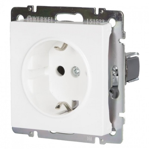 Механизм розетки Werkel WL01-SKG-01-IP20 одноместный с заземлением белого цвета поставляется без рамки, устанавливается на одно монтажное место.