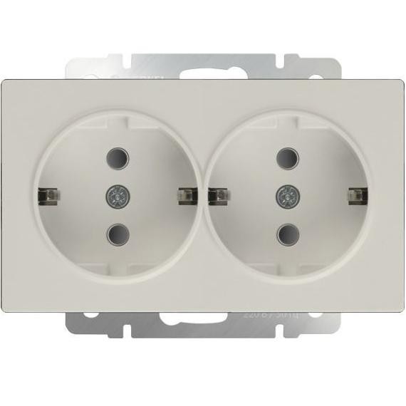 Механизм розетки Werkel WL03-SKG-02-IP20 двухместный с заземлением цвета Слоновая кость поставляется без рамки, устанавливается на одно монтажное место.