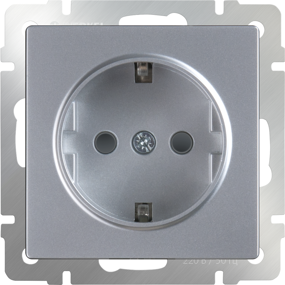 Механизм розетки Werkel WL06-SKGS-01-IP44 одноместный с заземлением и защитными шторками серебряного цвета поставляется без рамки, устанавливается на одно монтажное место.