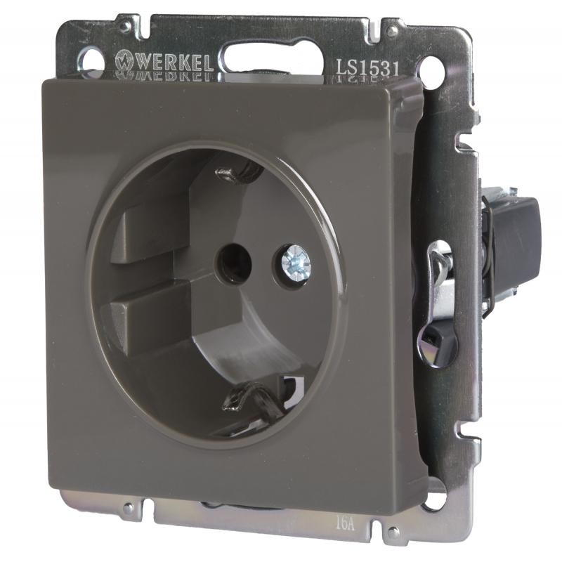 Механизм розетки Werkel WL07-SKG-01-IP20 одноместный с заземлением серо-коричневого цвета поставляется без рамки, устанавливается на одно монтажное место.