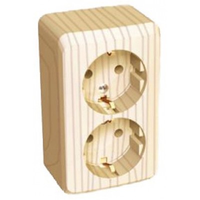 Розетка 2-м ОП Этюд Дача 16А с/з з/ш сосна PA16-008d