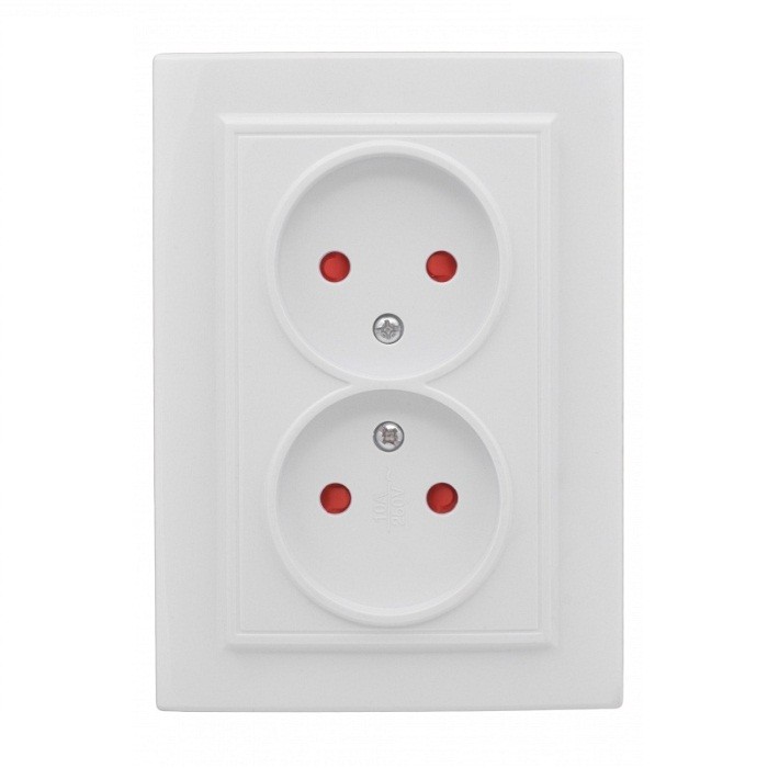 Розетка EKF Минск ERR10-102-100 оснащена защитными шторками. Данная функция предохраняет розетку от случайного попадания внутрь посторонних предметов. Принцип работы шторок очень прост: при отсутствии вилки отверстия для нее закрыты пластиковой задвижкой. Чтобы ее сдвинуть нужно надавить одновременно в оба отверстия с некоторым усилием.